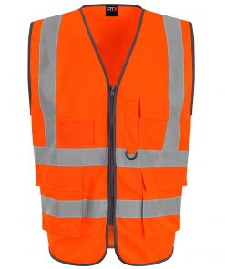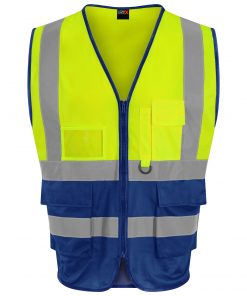 This executive vest is designed with added functionality for supervisors and managers who need quick access to essential items throughout the working day. It includes an ID card pocket, a dedicated mobile phone pocket, a key loop and two expandable front pockets with flaps for secure storage. Lightweight and practical, it offers convenience without compromising on comfort.