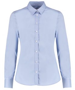 This contemporary women’s slim-fit Oxford shirt features added stretch for superior comfort, freedom of movement and a flattering tailored silhouette. The Lycra® content ensures excellent shape retention and a crisp look throughout long shifts.