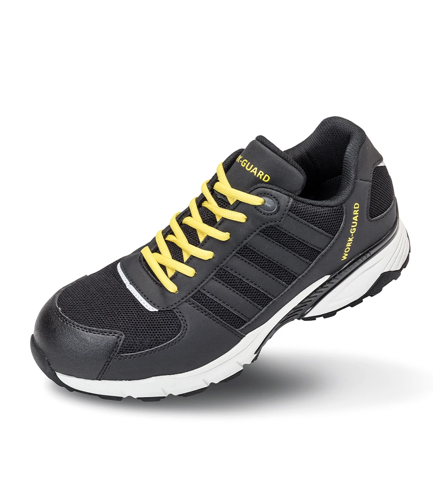 Certified to EN ISO 20345:2011 S1P SRC standards, the trainers are fitted with a polycarbonate composite toe cap and a composite midsole for effective impact and underfoot protection. The EVA and rubber sole offers SRC slip resistance and anti-static performance, while a scuff cap and reflective detailing add extra durability and visibility. A padded tongue improves comfort, and the trainers are supplied with spare laces in black/grey, yellow/black, and black for added convenience.