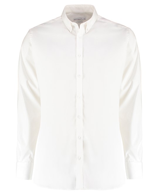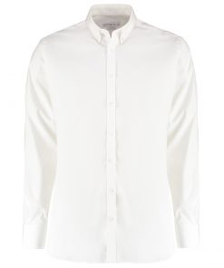 This contemporary slim-fit Oxford shirt combines a sharp, modern silhouette with built-in stretch for exceptional comfort and freedom of movement. The added Lycra® content ensures the fabric recovers its shape while maintaining a crisp, professional appearance throughout the day.