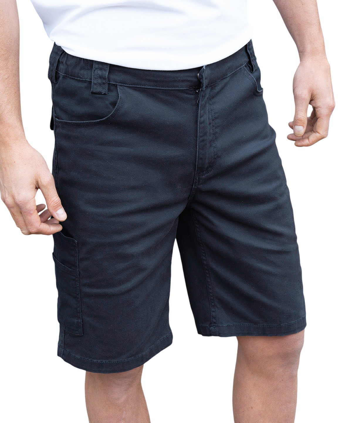 These lightweight yet formal-looking slim-cut shorts offer a close, comfortable fit thanks to their added elastane stretch. Designed for ease of movement and a smart appearance, they provide a sleek and practical option for warm-weather work or everyday wear.